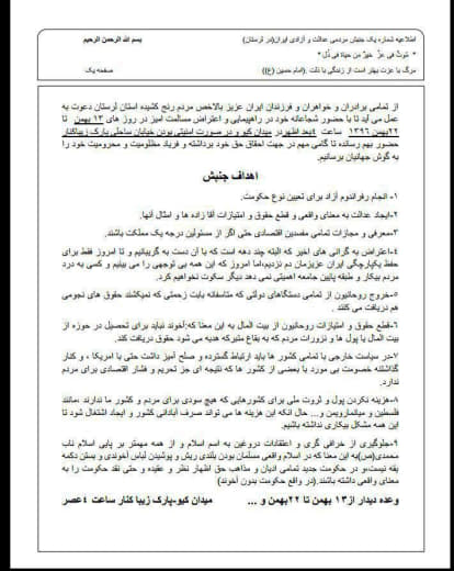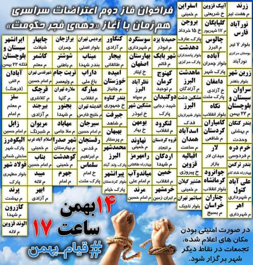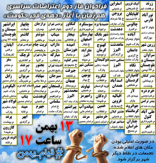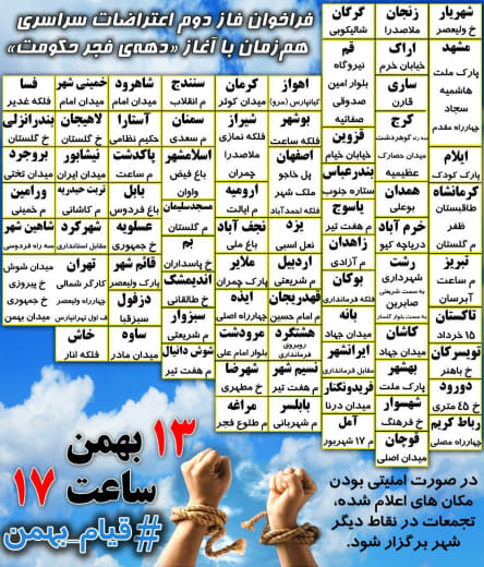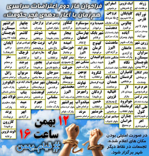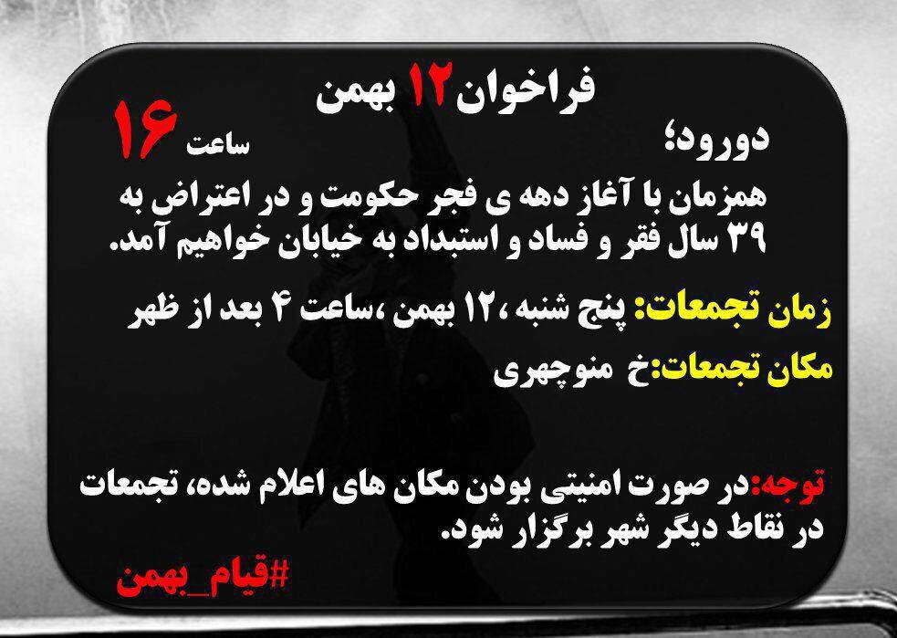 🔴 فراخوان مردمی خیزش ملی ضد ظلم در شهرهای مختلف در روز ۱۲ بهمن ساعت ۱۶