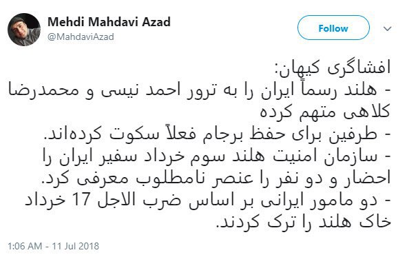 گفته میشود دلیل اینکه حکومت بطور جدی فرار «خاوری» را پیگیری نمیکند، ترس از افشای برخی اطلاعات توسط خاوری است. در واقع ۳ میلیون دلاری که خاوری با خود به کانادا برد، به نوعی حق السکوت او محسوب میشود.