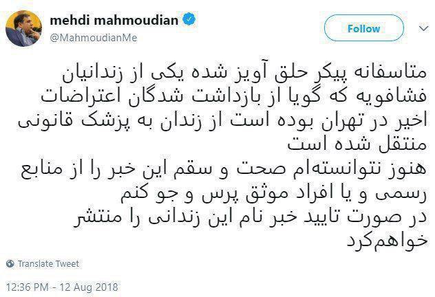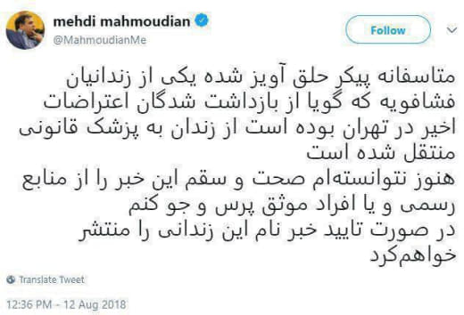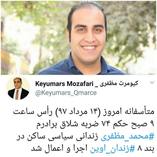 One of these Darvishes is Zafarali Moghimi, a PhD student studying metallurgy at the University of Amir Kabir. Zafarali Moghimi has been on a hunger strike since April 17th, 2018 to protest repeated beatings, severe torture, the inhumane conditions in prison, the failure to fulfill the promise of a fair trial, and the indefinite imprisonment of himself and all other prisoners of conscience.