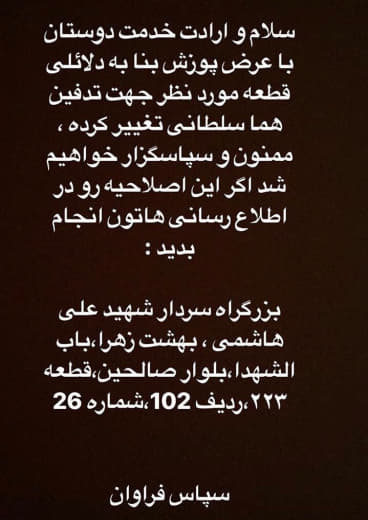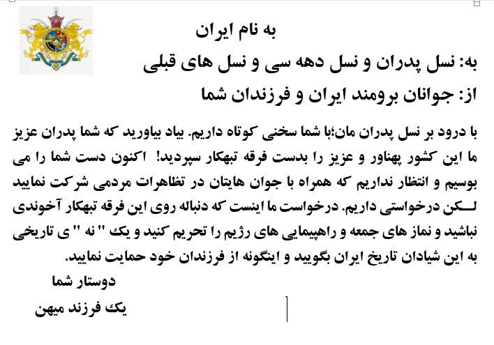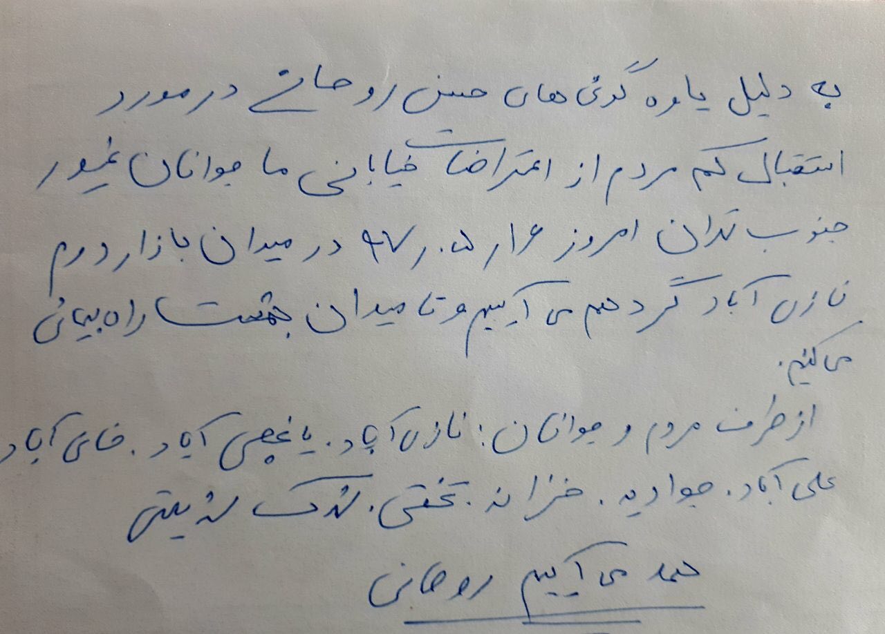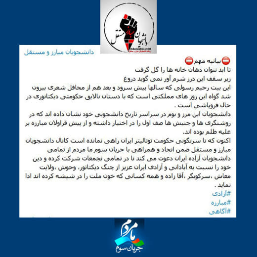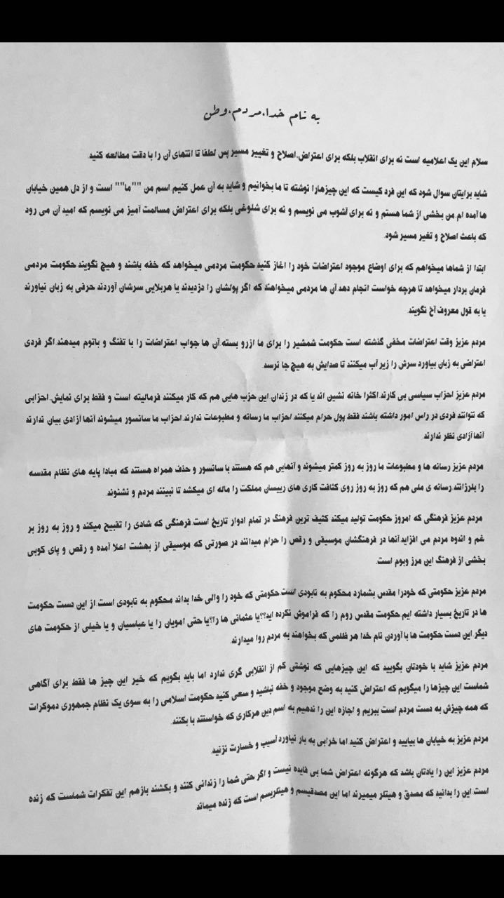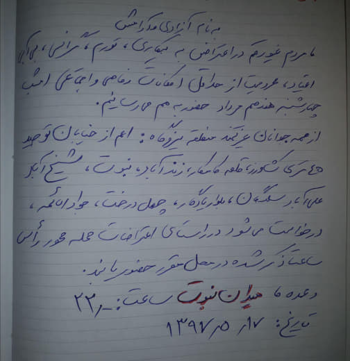 We, the signatories of this petition, call for an urgent and widespread response to this brutal oppression. We believe the responsibility of Moghimi's life falls primarily in the hands of the Islamic Republic authorities, as well as all of the people on this planet.
