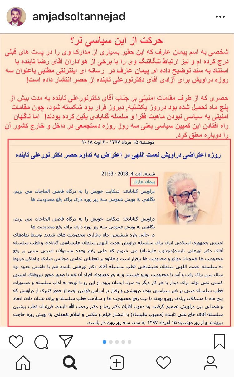 یکی از اين دراويش، ظفر علی مقيمی دانشجوی دوره دكترای متالورژی دانشگاه اميركبير میباشد که از ١٨ فروردينماه ١٣٩٧، در پی ضربوشتم، شكنجه شديد، شرايط نگهداری اسفناک و محقق نشدن وعده دادرسی عادلانه و آزادی خود و تمام زندانيان عقيدتی سياسی دست به «اعتصاب غذای تر» زده است.