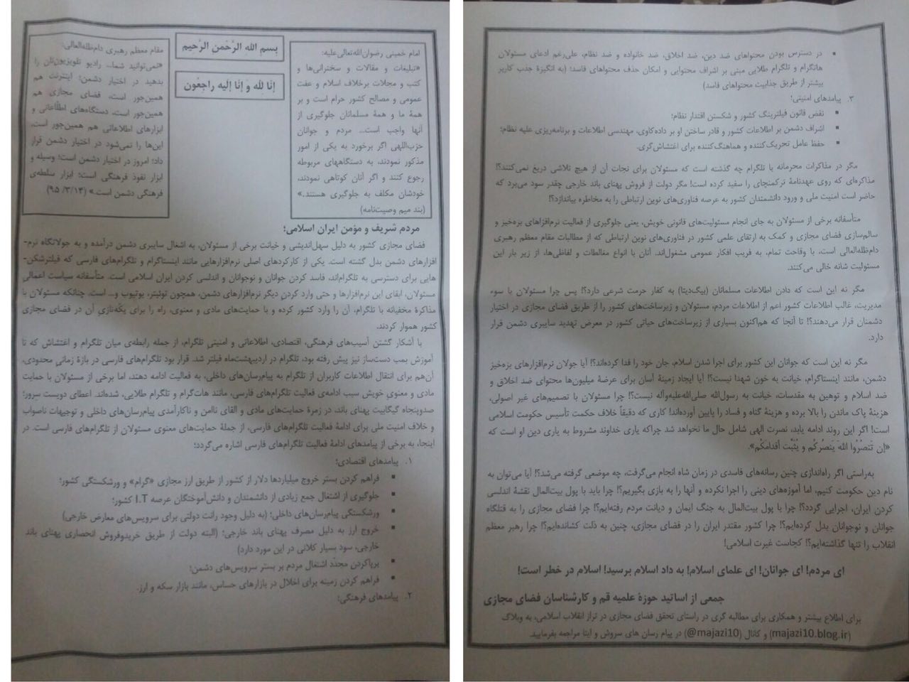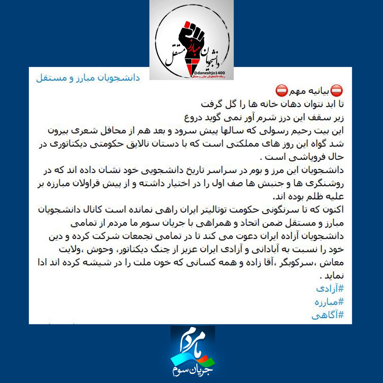 توضیح: این بیانیه به امضای ۴۰۰۰ نفر رسیده و برای مجامع بینالمللی ارسال شده است. افرادی چون دکتر محمد ملكي، فريده مرادخانی، زهرا رباني املشی، محمد نوریزاد، دکتر سيدمحمد سيفزاده، عبدالحميد معصومی تهرانی، احمد منتظری، عليرضا جباري، عمار ملکی و دکتر حسن نايبهاشم از امضاءکنندگان این بیانیه هستند.