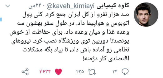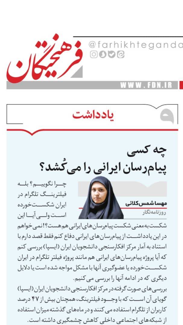 اکنون حلقههای مفقود شده زنجیر اتحاد ایرانیان در حال کامل شدن است. رسانه میلی و روزنامهها و سایتهای نظام چهل سال با دروغپردازی و تولید خبرها و محتوای جعلی در خدمت دیکتاتوری و در راستای به بند کشیدن و مسموم نمودن اندیشه مردم بودند و پادزهر آن سموم، تولید محتوای پاک و مبتنی بر حقایق است.