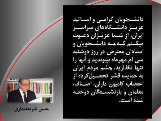شما پل ارتباطی راستین میان مردم و فعالان و رهبران آزادیخواه میهناید. این همان حلقه مبارک پیروزی ماست.
