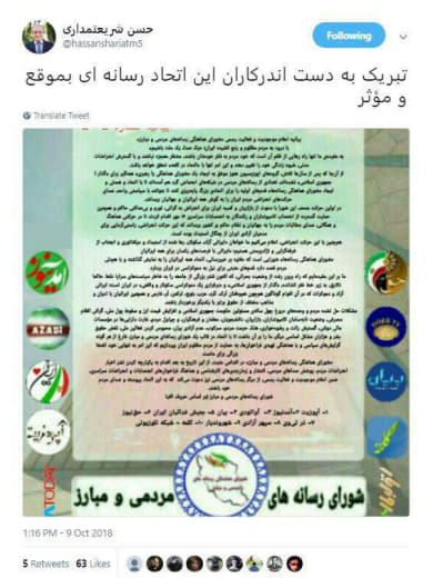 @Sedaiemardom🔹برای تقدیر از تشکیل «شورای هماهنگی رسانههای مردمی و مبارز»