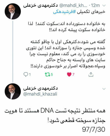 ۲۵- علی سوارى، ۲۳ ساله فرزند چاسب از اهالى عزیزیه شهر اهواز
