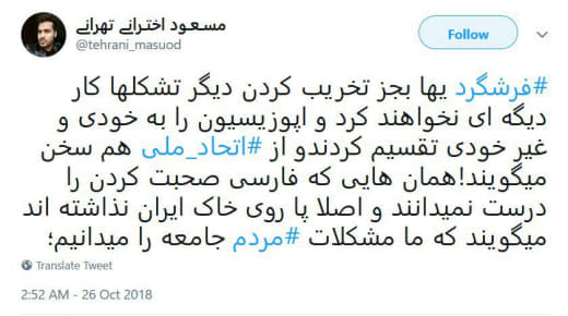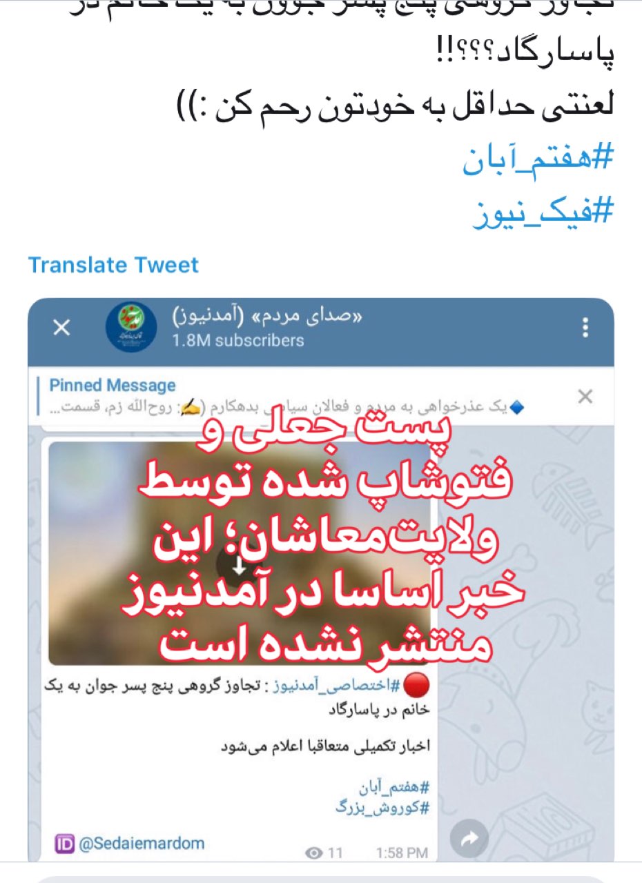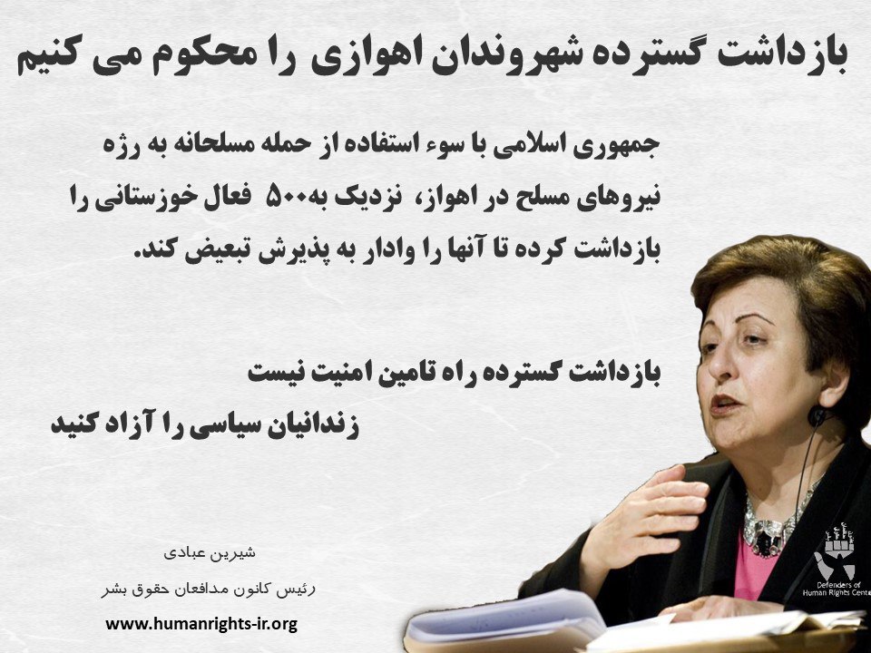 @Sedaiemardomمنابع محلی به سازمان حقوق بشر اهواز گزارش دادهاند كه دستگیریهای کور اخیر در مناطق مختلف استان همچنان ادامه دارد و شمار بازداشت شدگان که فعالان سیاسی و فرهنگی و حتی تعدادی از زنان و شهروندان عادی را شامل میشود، بیش از ۶۰۰ نفر شده است.