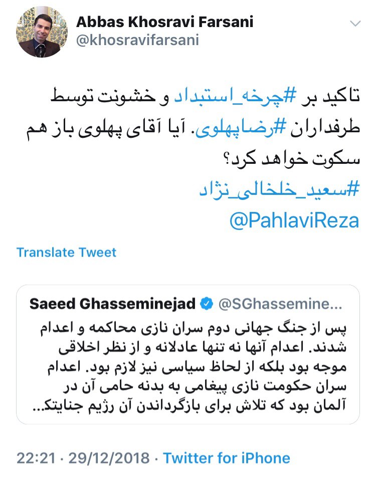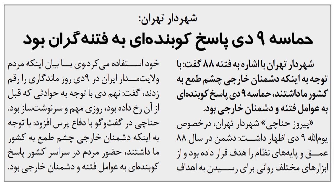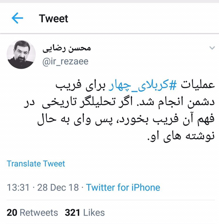 من طبق تجربهای که دارم، چنین احتمالی را که روزنامه میگوید با ارفاق، یک درصد امکان پذیر میدانم، یک درصد هم احتمال میدهم کسی او را کشته باشد و ۹۸ درصد احتمال میدهم این سردار سپاه خودکشی کرده باشد و چون انتشار خبر خودکشی یک سردار بلند پایه سپاه برای نظام و سپاه، تبعات بدی دارد، آنها تصمیم گرفتهاند خبر را جور دیگری تنظیم و منتشر کنند ولی به نظر من دروغگویی بیش از آنکه آبروی ما را حفظ کند، اسباب رسوایی و آبروریزی برای ما میشود.