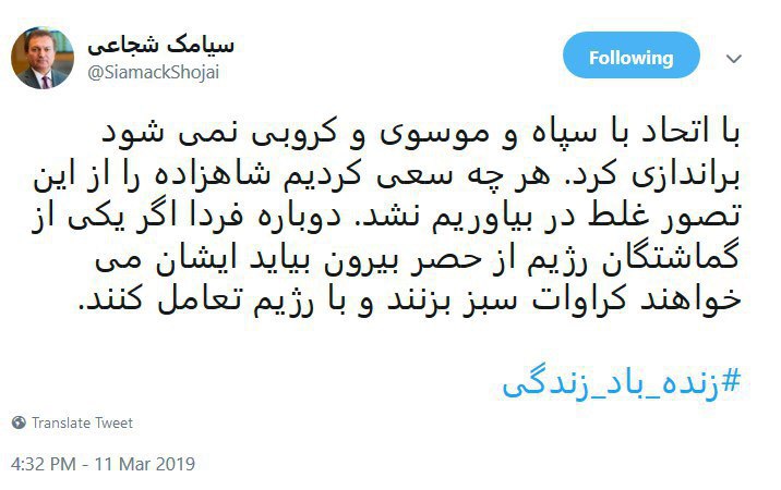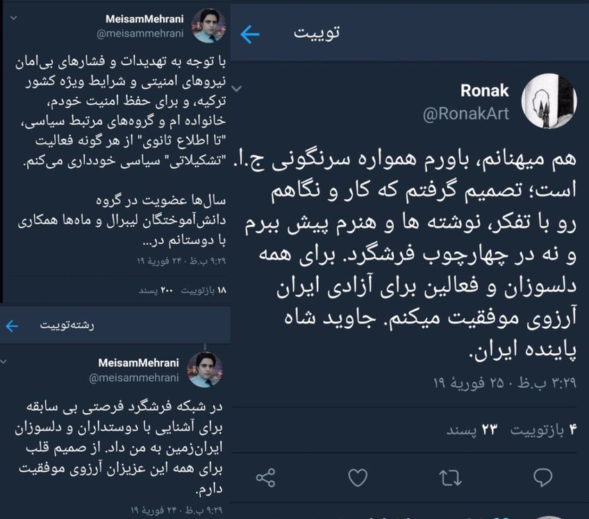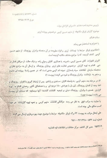 ۲۰- اردشیر عشایری: ۷ سال حبس، ۷۴ ضربه شلاق، ۲ سال تبعید، ۲ سال محرومیت اجتماعی و رسانهای، ۲ سال ممنوعیت خروج از کشور