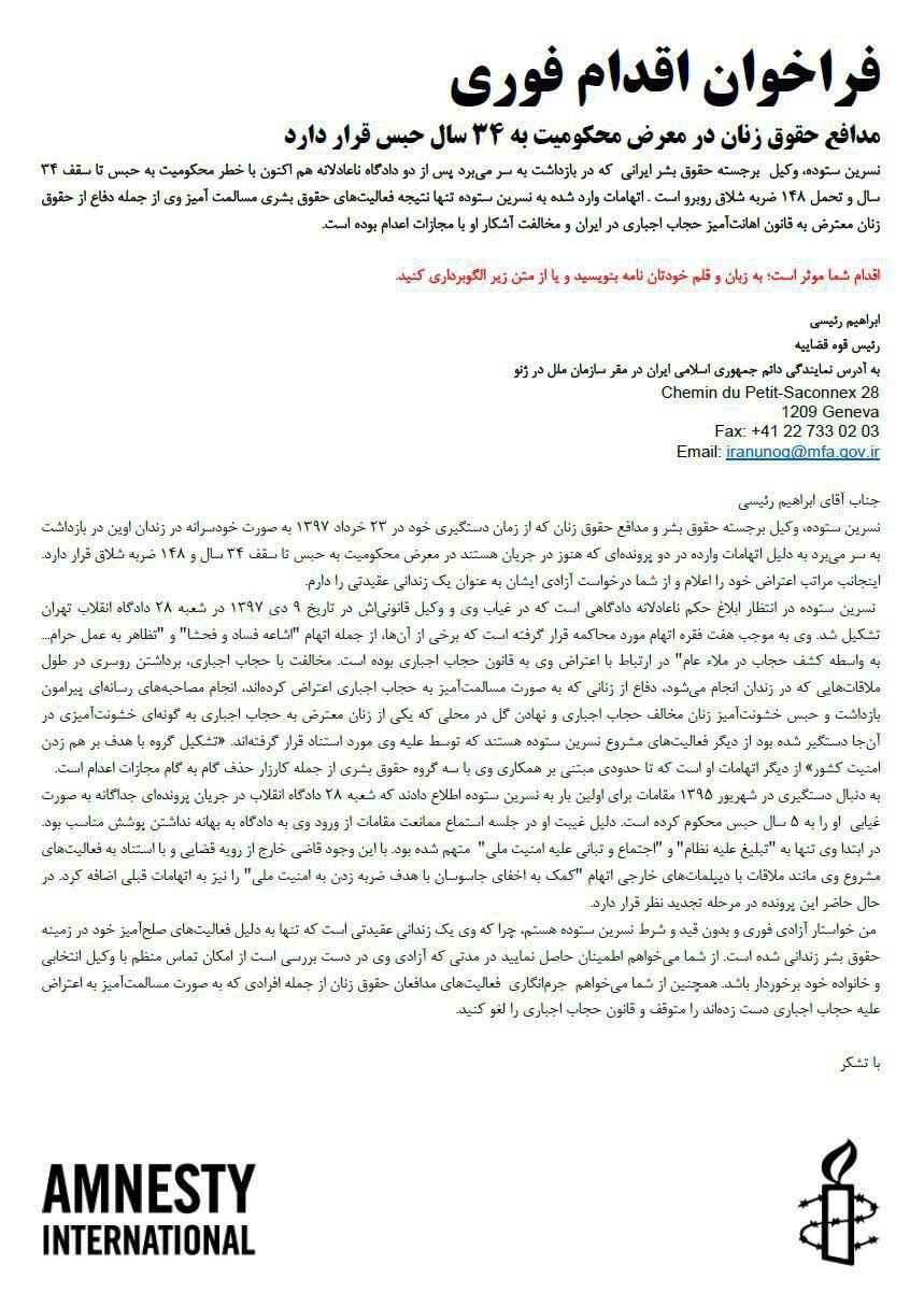۱۱- سخاوت سلیمی: ۷ سال حبس، ۷۴ ضربه شلاق، ۲ سال تبعید، ۲ سال محرومیت اجتماعی و رسانهای، ۲ سال ممنوعیت خروج از کشور