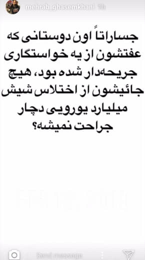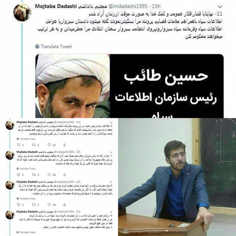 ۶- سینا انتصاری: ۷ سال حبس، ۷۴ ضربه شلاق، ۲ سال تبعید، ۲ سال محرومیت اجتماعی و رسانهای، ۲ سال ممنوعیت خروج از کشور