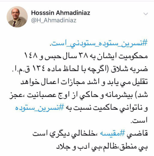 ۱۴- احمد ایرانیخواه: ۷ سال حبس، ۷۴ ضربه شلاق، ۲ سال تبعید، ۲ سال محرومیت اجتماعی و رسانهای، ۲ سال ممنوعیت خروج از کشور