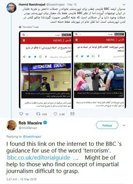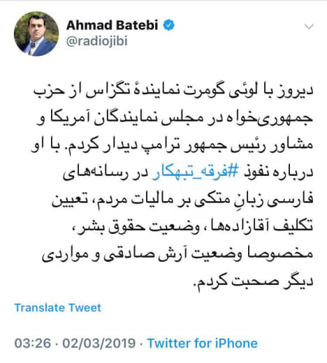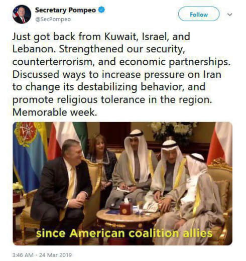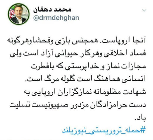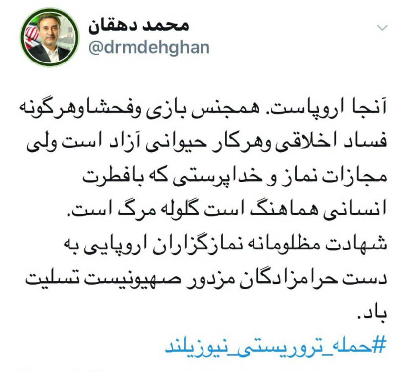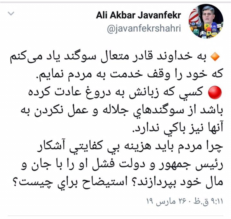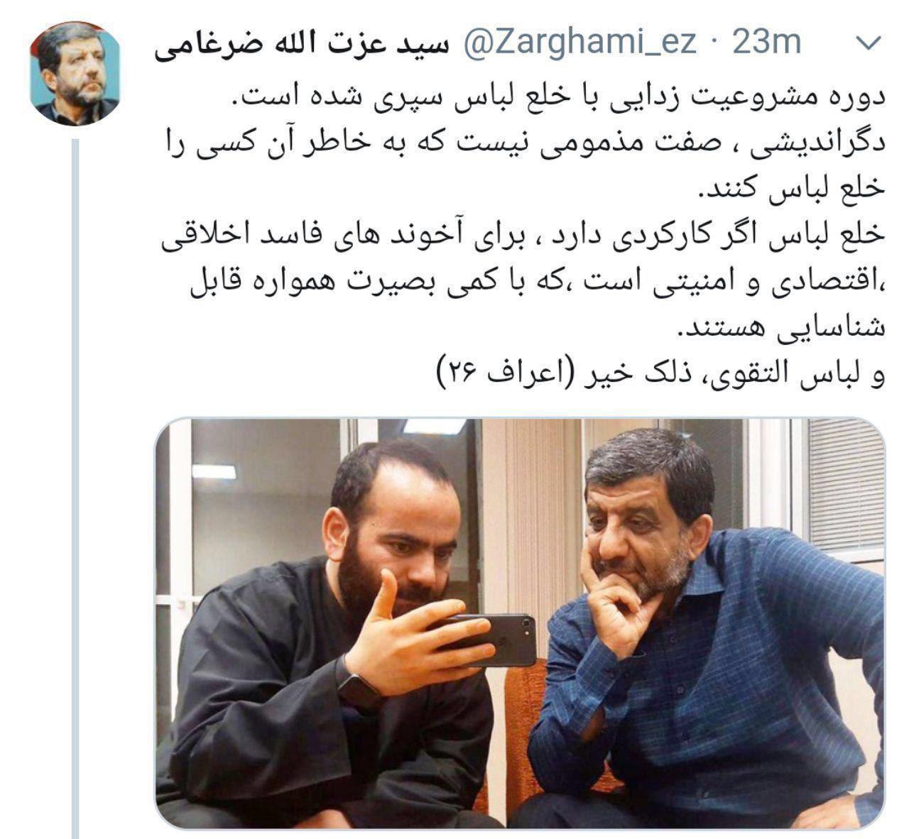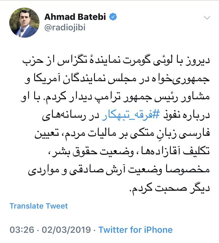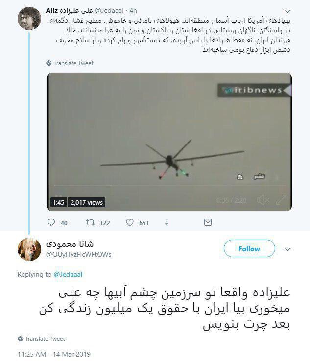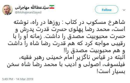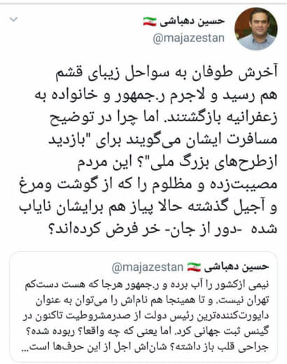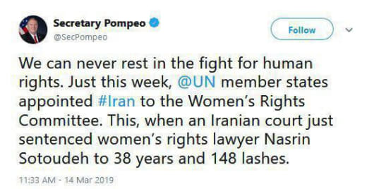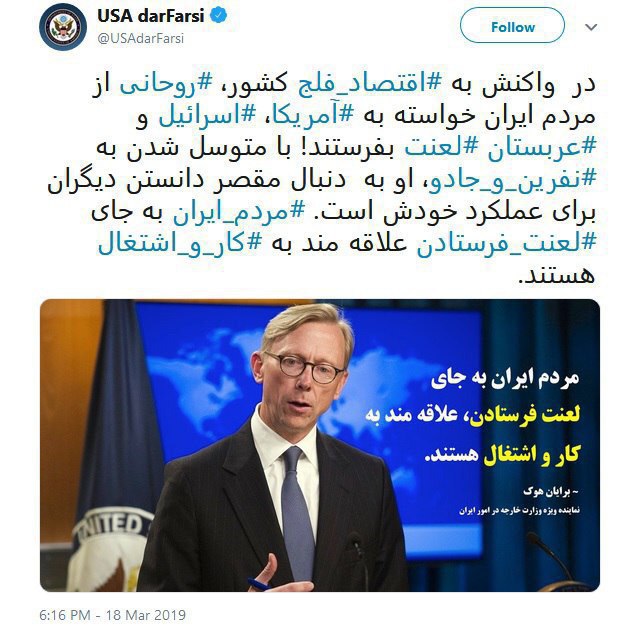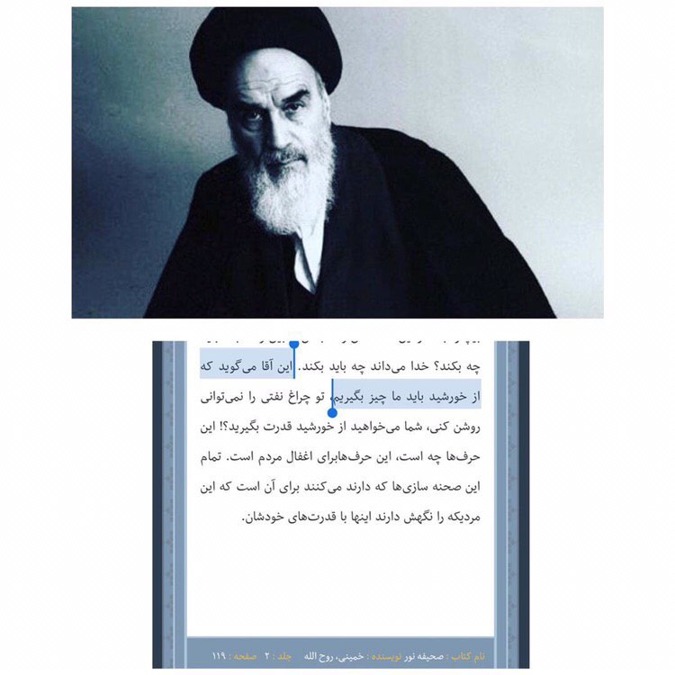 مصداق آن در رفتار پیروان خمینی که آمریکا را «شیطان بزرگ» مینامند اما فرزندان و خانواده خود را برای تحصیل و مداوا به آنجا میفرستند، آشکار است.
