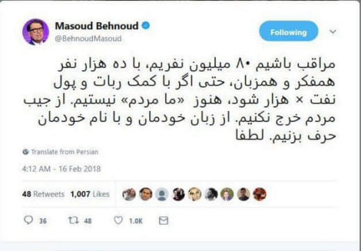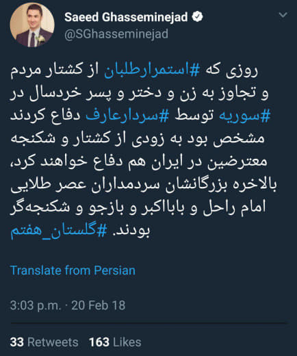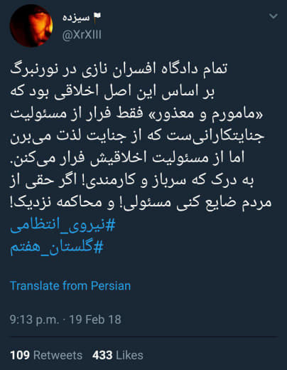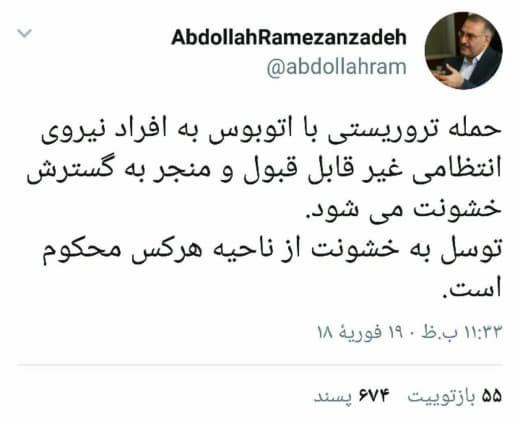 مسئولیت خشونتهای فعلی بر عهده کسانی است که معترضان مسالمتجو را در خیابان به گلوله بستند، آنها را حبس و اعدام کردند.