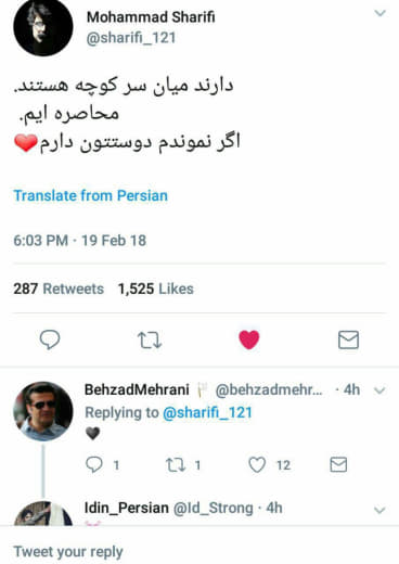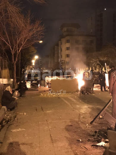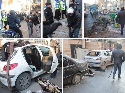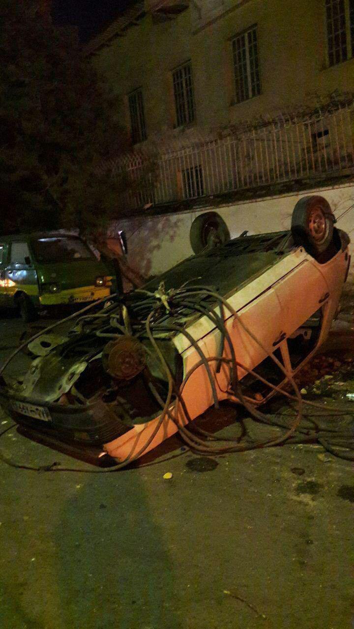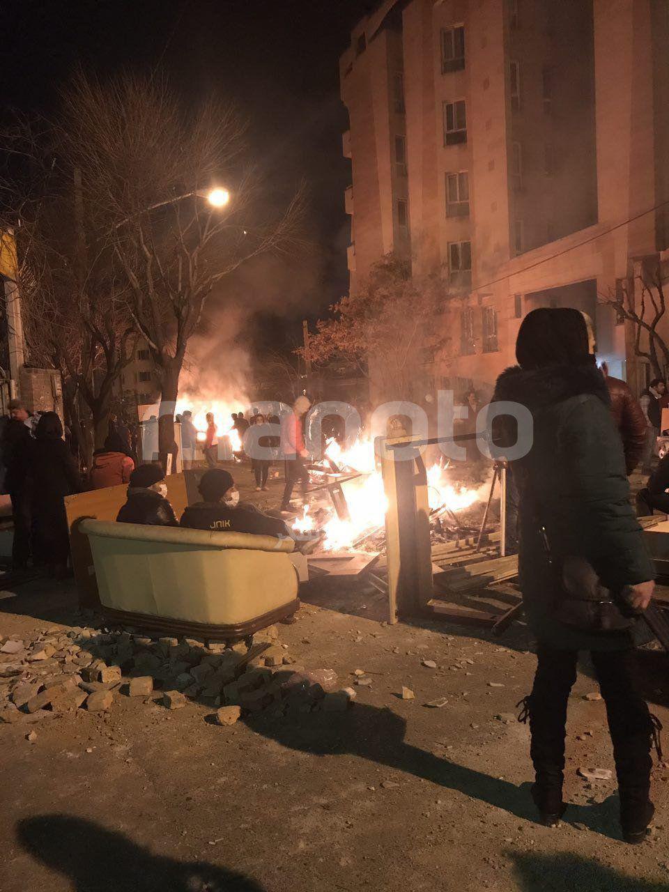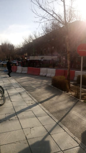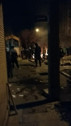 خیابان از خودرو خالی و کف خیابان پر از تخته سنگ و آجر بود.بهناگاه دو اتوبوس قدیمی ماکیروس که سالها تردد آن در تهران ممنوع بود از جنوب خیابان میرزای شیرازی وارد تقاطع تختِطاووس شد و وسط چهارراه توقف کرد و درحالیکه راننده باعجله درحال فرار ازصحنه بود، یکباره آتش سراسر اتوبوس را فرا گرفت!