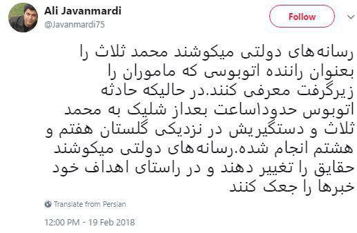 چطور کسی که بر اساس اخبار موجود ساعاتی قبل دستگیر شده و خبر دستگیری آن منتشر نیز شده، میتواند راننده اتوبوسی باشد که بعدا اقدام به راندن به سمت نیروهای مهاجم انتظامی کرده است؟