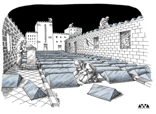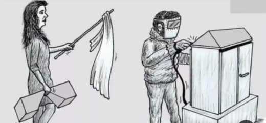 دوربین و خبرنگار تحتالحفظ راحت وارد ساختمان شدند و جهت دوربین از جایی که ما میدیدیم به محلی زوم شد که هیچ حادثهای در جریان نبود و تنها دقایقی بعد شعلههای آتش یک اتوبوس قدیمی پارک شده در خیابان را فیلمبرداری میکرد که در حال سوختن بود.