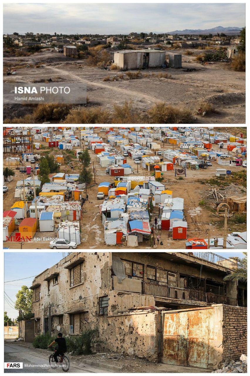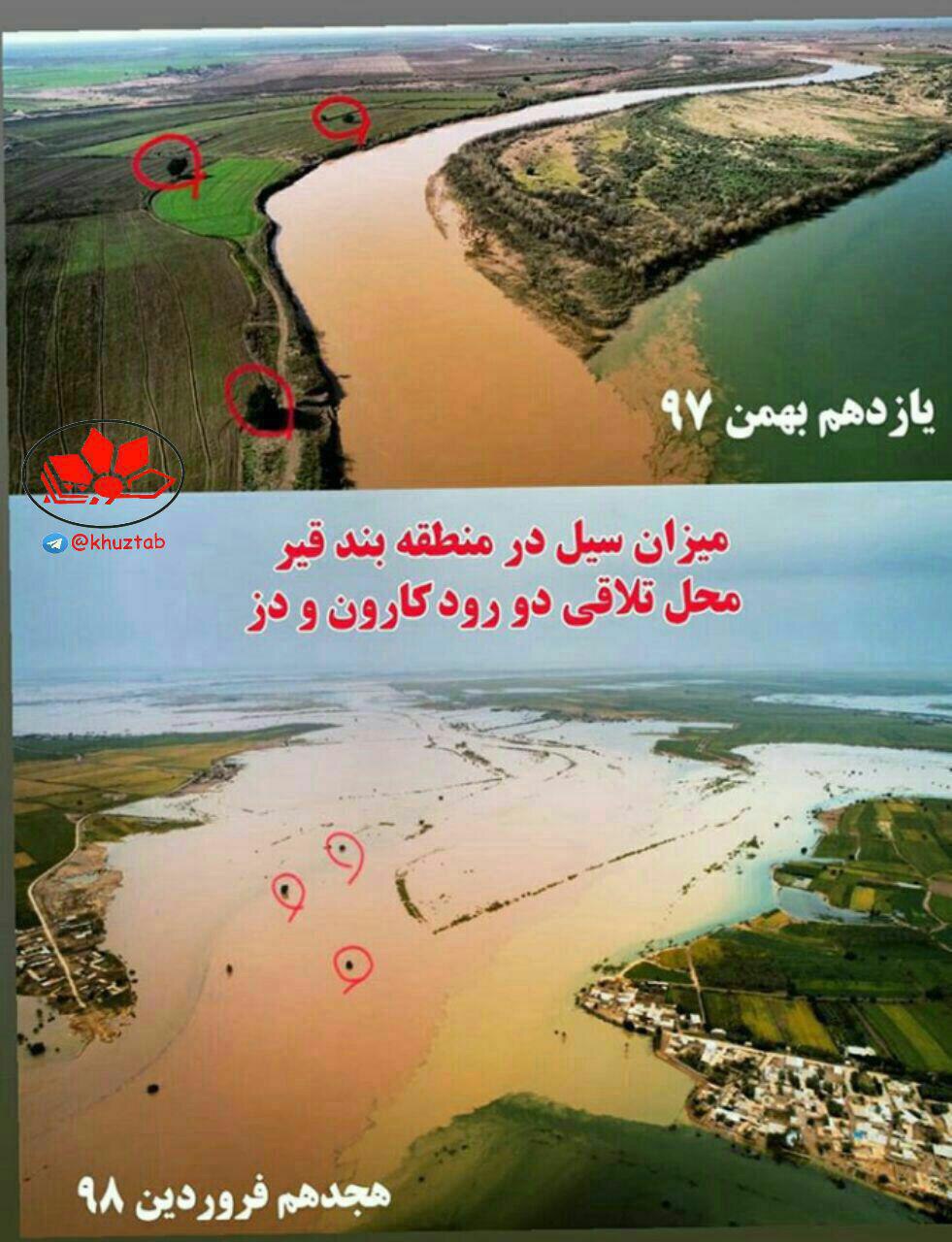 به همین جهت بود که از یک هفته پیش پلیس به حمیدیه و خفاجیه رفت و مردم را تحت فشار قرار داد تا هر چه سریعتر تخلیه کنند. برای اینکه عمق این فاجعه و شکلگیری آن را متوجه باشیم تنها به مکانهای شکستن سیل بندها و جاری شدن سیل در یک خط چند ده کیلومتری حاشیه کارون در یک مسیر نگاه کنیم. توجه کنید که این مناطق یکی پس از دیگری هستند: