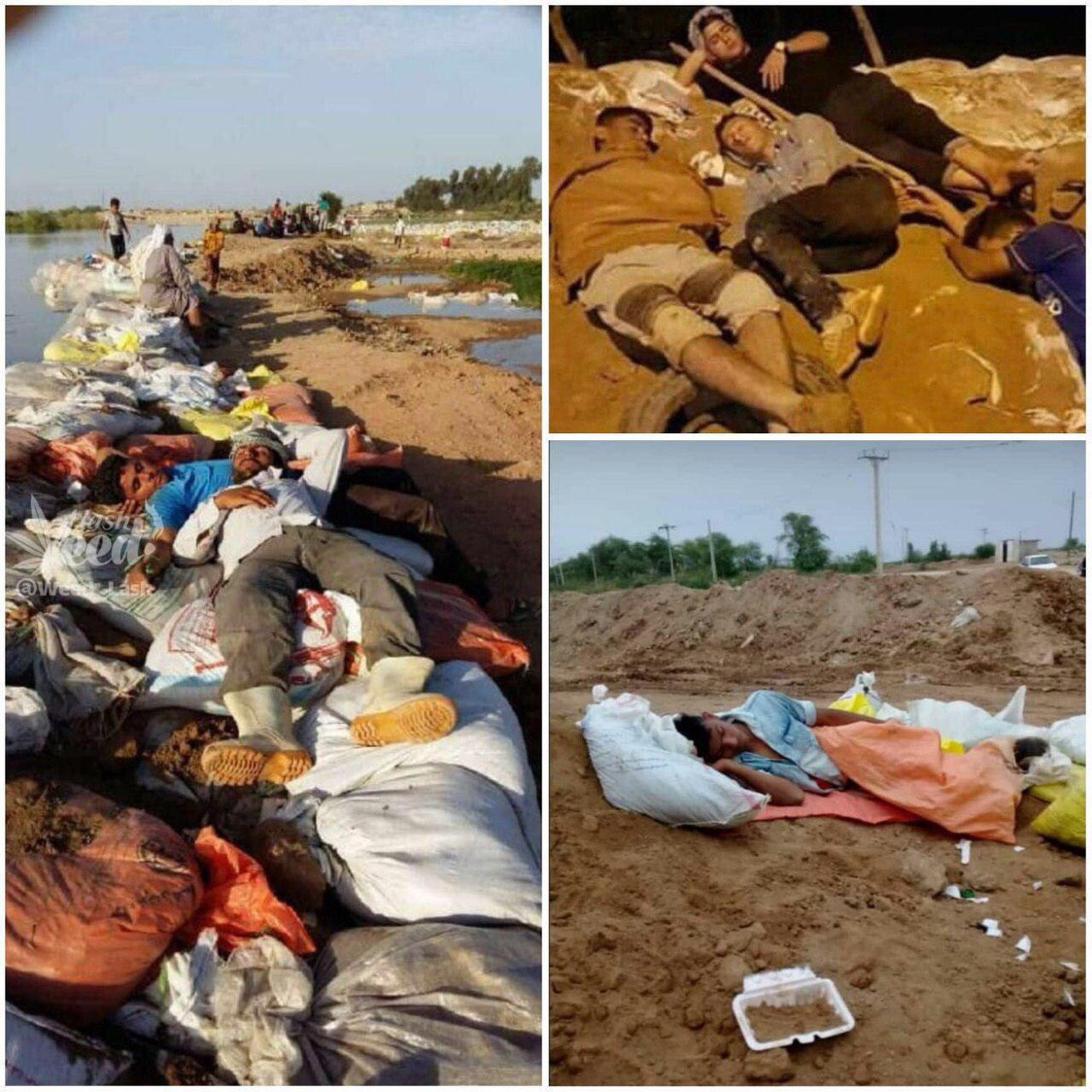 در تعداد زیادی از ویدیوهایی که در فضای مجازی منتشر شده است٬مردم شهرها و روستاهای عرب را میبینیم که با دستان خالی مشغول ساختن سد و جلوگیری از پیشروی آب هستند. بسیاری از این مردم از دولت گلایه میکنند که چرا کسی به کمک آنها نمیرسد؟ چرا نهادهای دولتی یک ماشین سنگین و یا وسایل و آلات خاکبرداری را به این مناطق ارسال نمیکند؟ آیا واقعا دولت عاجز از آن است که همین کاری که این مردم انجام میدهند را به سرانجام برساند؟ آیا دولت عاجز است چندین ماشین سنگین نخاله ساختمانی را راهی این شهرها و روستاها سازد؟