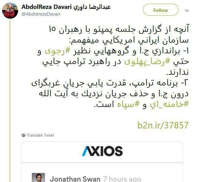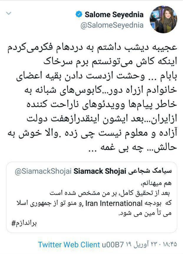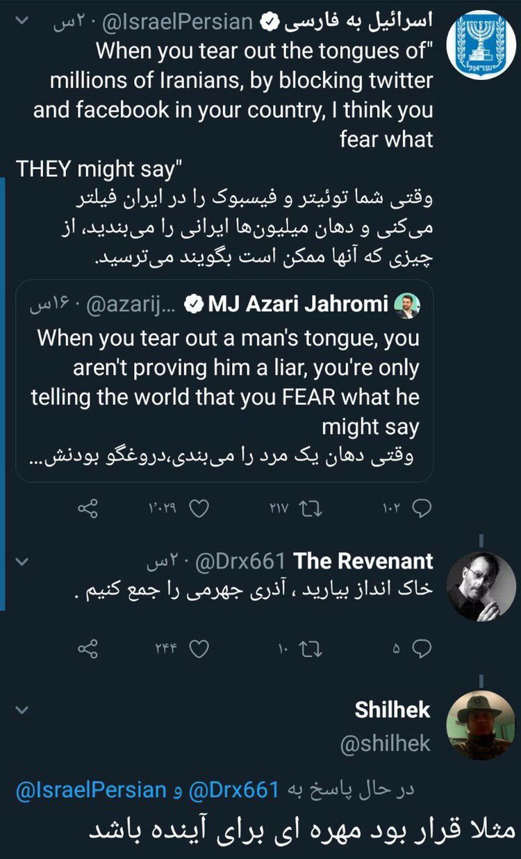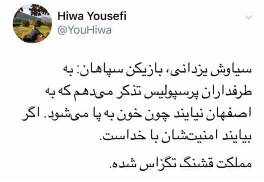 الان که من با شما سخن میگویم، بین من و مردم هیچ فاصلهای نیست. من از میان مردم به شما خبر میدهم که این مردم مدتهاست که دیگر شما را و جمهوری اسلامی را نمیخواهند.