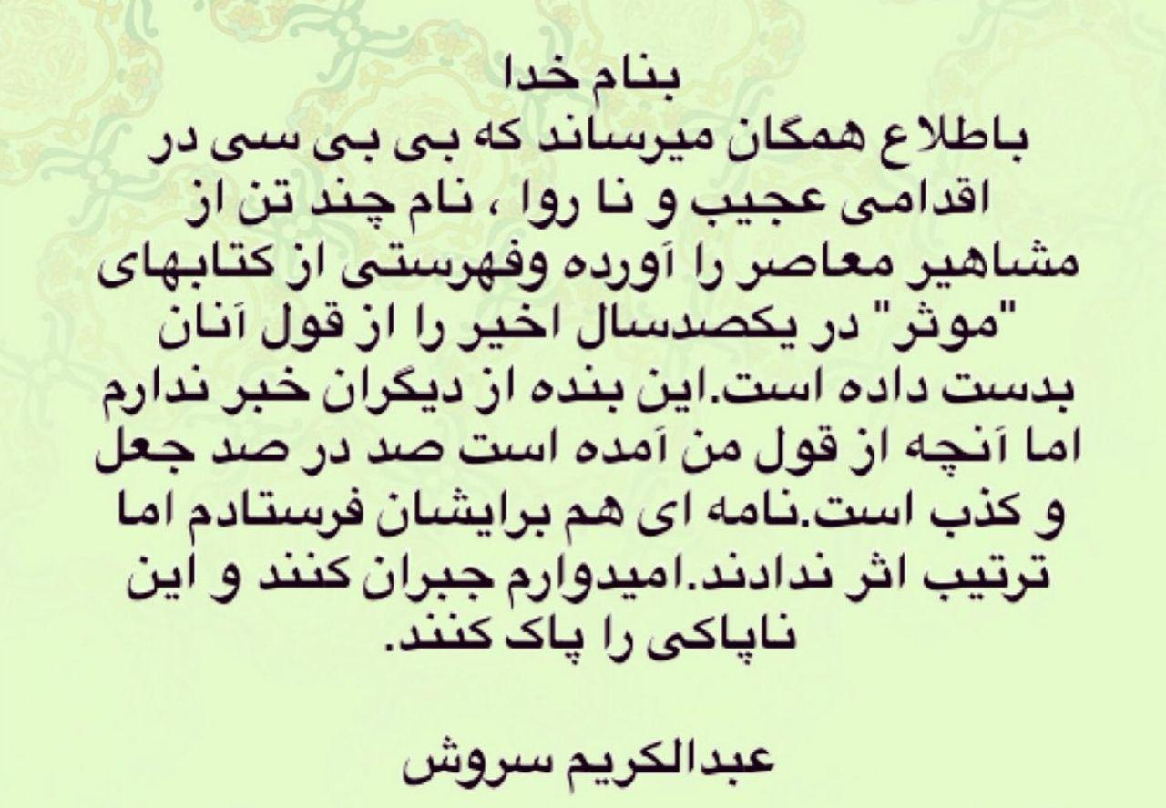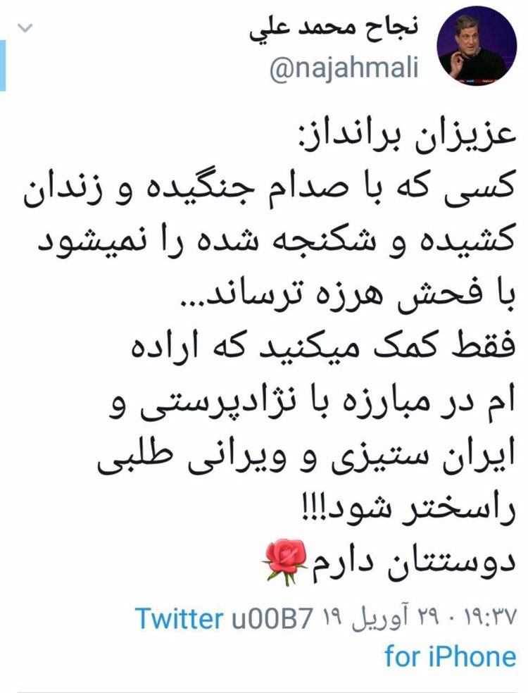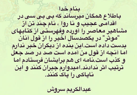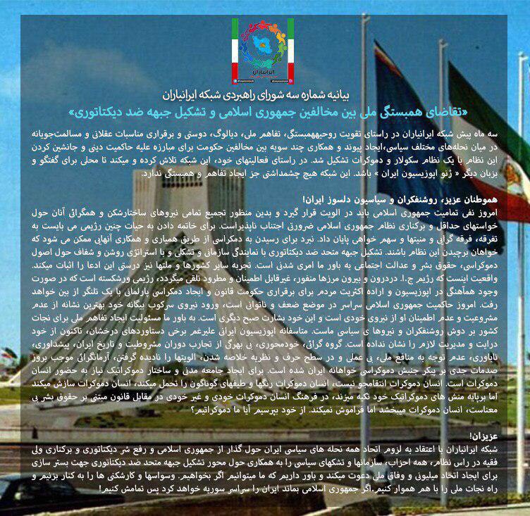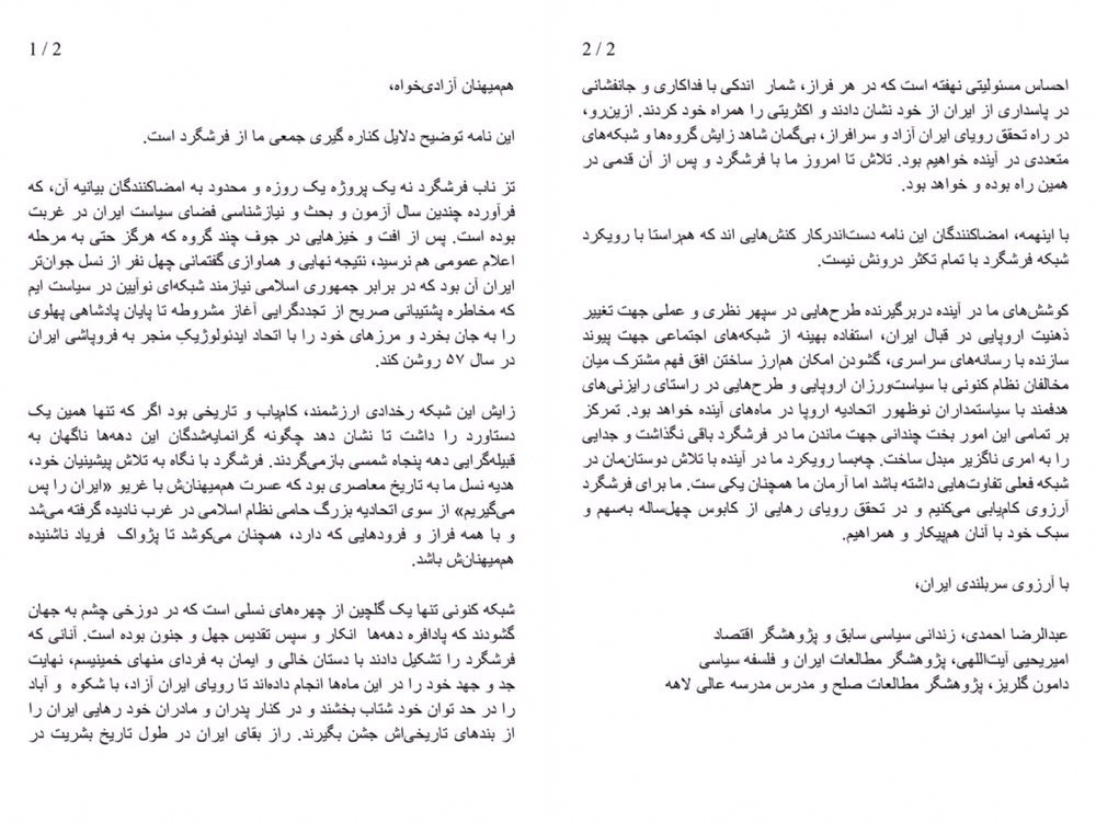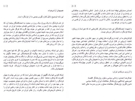 جناب آقای خامنهای؛ به نفع شماست که مشکلتان را با ما که منتقدِ شما هستیم، حل کنید. مشکل ما با شما از طریق رفراندوم و مراجعه به آرای عمومی حل میشود. اینکه شما به وسیلهی سپاه و وزارت اطلاعات و قوهی قضائیه برای ما قدرتنمایی کنید و به ما چنگ و دندان نشان بدهید و ما را از زندان و تبعید بترسانید، این کارها باعث نمیشود که ما دست از سر شما برداریم. این کشور مال ماست. مال فرزندانِ ماست. ما کشورمان را دوست داریم و میخواهیم آن را به دست خودمان آباد کنیم. ما میخواهیم از طریق رفراندوم کشورمان را از شما پس بگیریم. شما چهل سال، حکومت کردید البته چهل سالِ دیگر هم حق دارید حکومت کنید به شرط آنکه در یک رفراندوم واقعی با حضور ناظرانِ بیطرف، پیروز بشوید. ما حاضریم با شما و با تمام طرفهای مدعی مذاکره کنیم که چه چیزی به رفراندوم گذاشته شود.