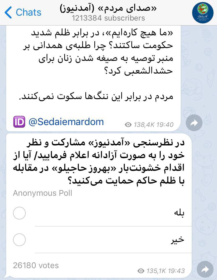 من به شما میگویم اگر یک رفراندوم واقعی در کشور برگزار شود، حداقل نود درصد مردم به شما و به جمهوری اسلامی «نه» میگویند.